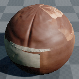 The material system allows for subgraphs within a material node network. Links to subgraphs can be accessed by clicking on their collapsed node or by navigating to the additional entries in the class.